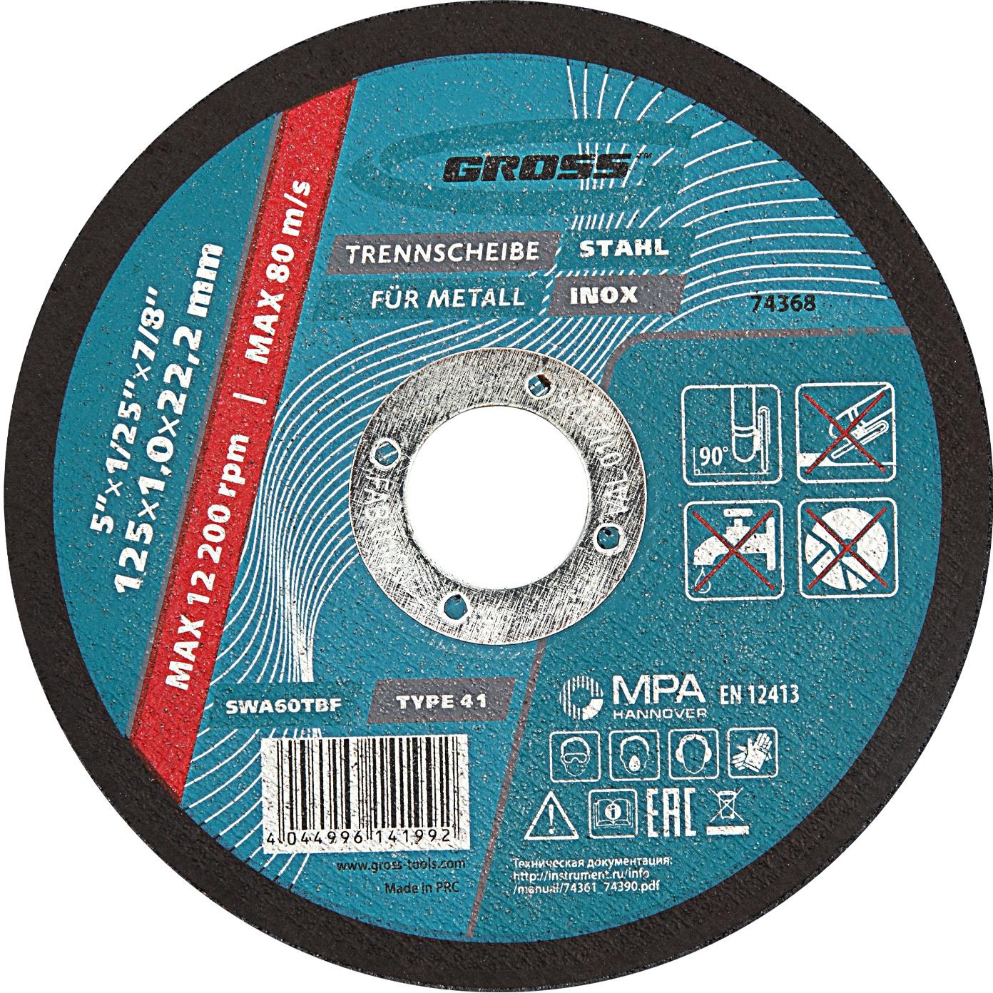 Диск отрезной по мет. Gross 74368 d=125мм d(посад.)=22.2мм (угловые шлифмашины)