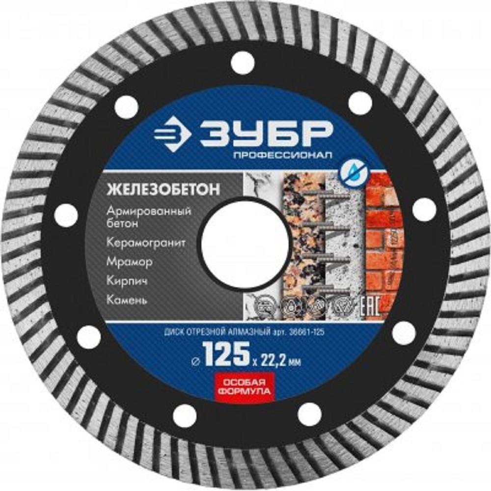 ЗУБР Железобетон, 125 мм, (22.2 мм, 10 х 2.4 мм), сегментированный алмазный диск, Профессионал [36661-125]
