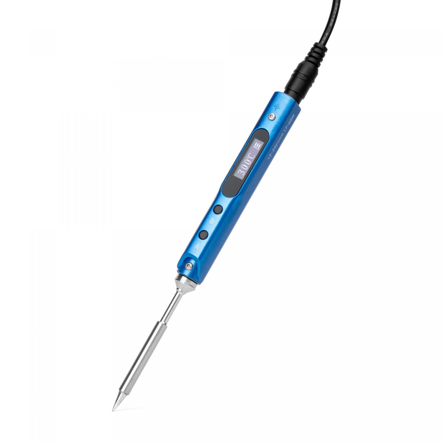Цифровой портативный паяльник IQFUTURE IQ-SSI65B мощностью 65W под сменные жала TS Series, питание DC 12V-24V, программируемый, OLED экран. Синий