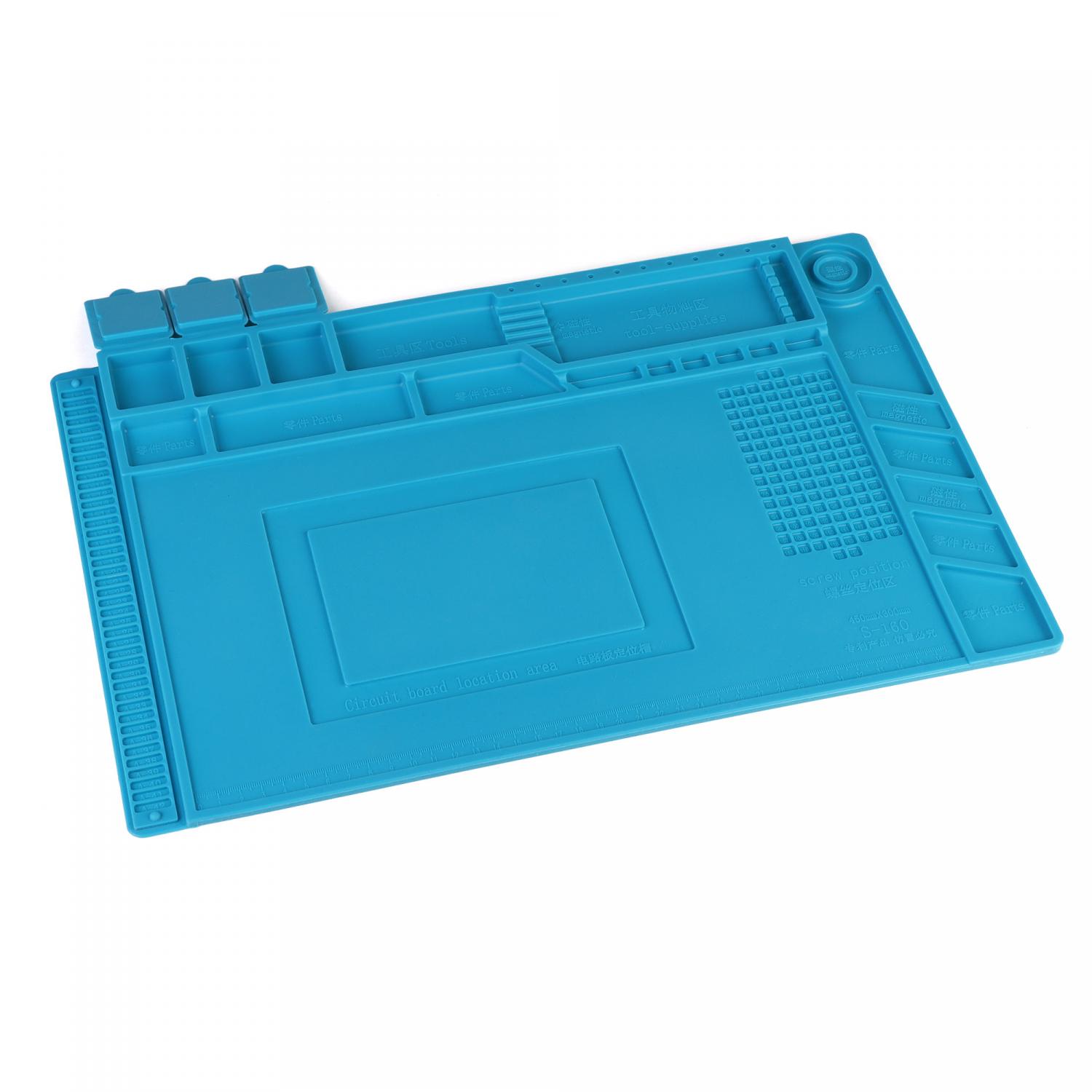 Коврик силиконовый термостойкий 45х30см A3 для ремонта и пайки электронных компонентов и микросхем. 180 секций, магнитные площадки. Цвет синий