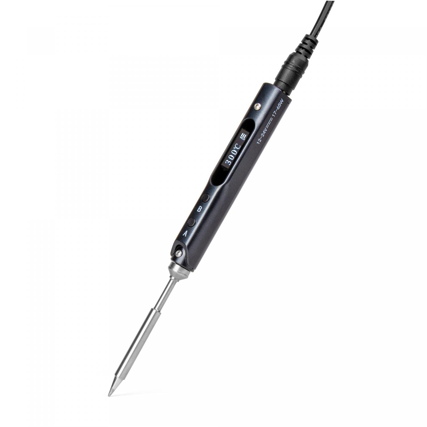Цифровой портативный паяльник IQFUTURE IQ-SSI65 мощностью 65W под сменные жала TS Series, питание DC 12V-24V, программируемый, OLED экран. Черный