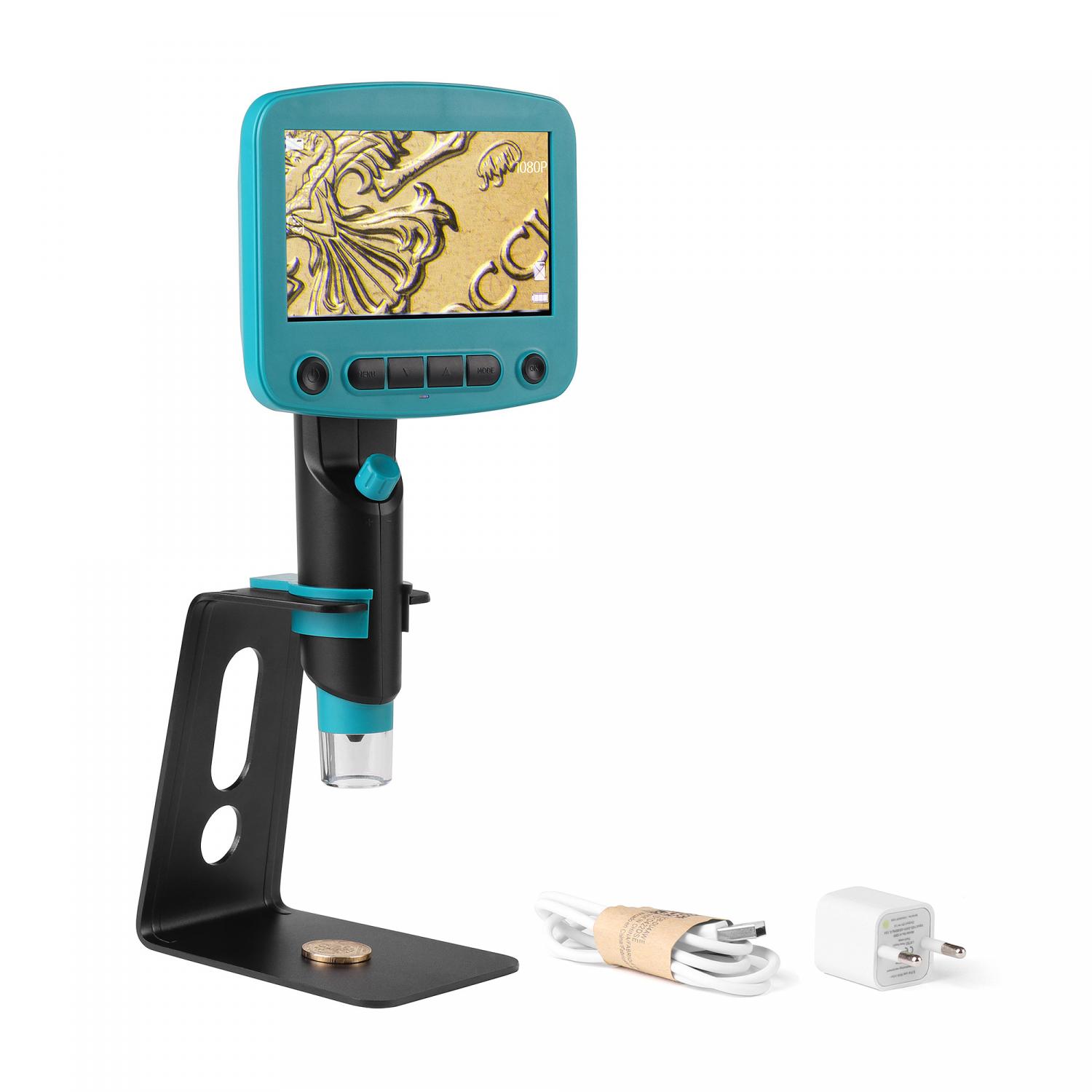 Цифровой микроскоп с увеличением 800X экран 4.3", подсветка, запись фото и видео, слот под MicroSD, подключение к ПК, аккумулятор 4000mAh. Камера 5MP