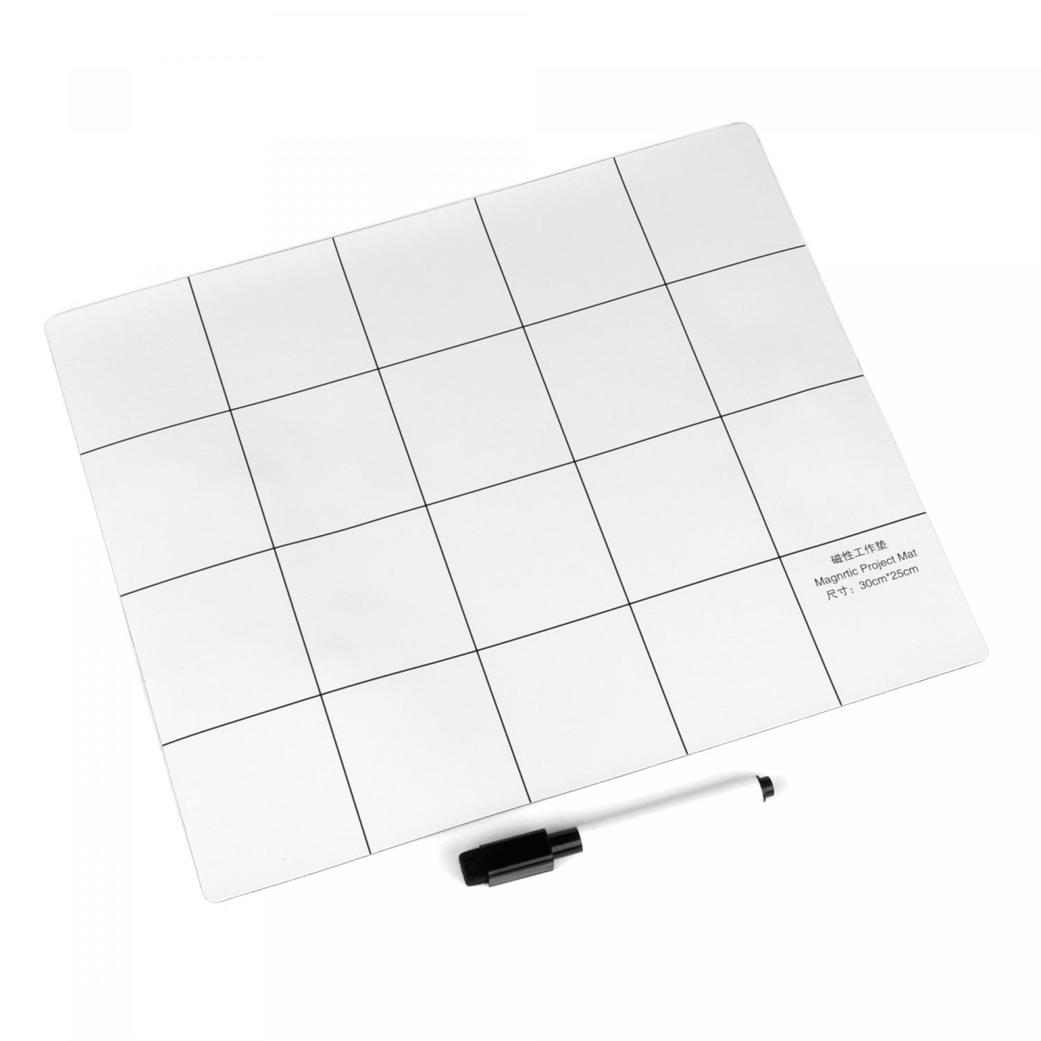 Коврик магнитный 250x300 мм для ремонтных работ и записей маркером с разметкой, цвет белый