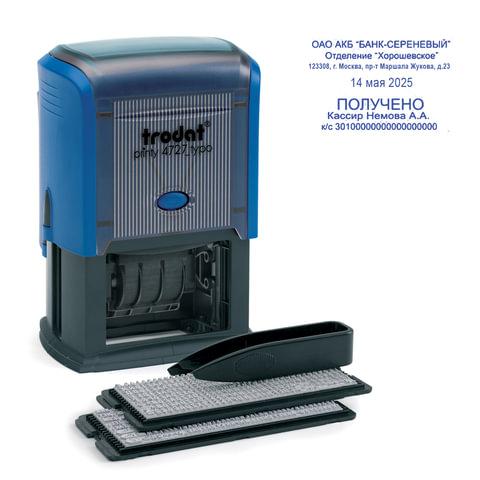 Датер самонаборный 6 строк+дата, оттиск 60х40 мм, синий, TRODAT 4727 Bank, КАССЫ В КОМПЛЕКТЕ, 188551