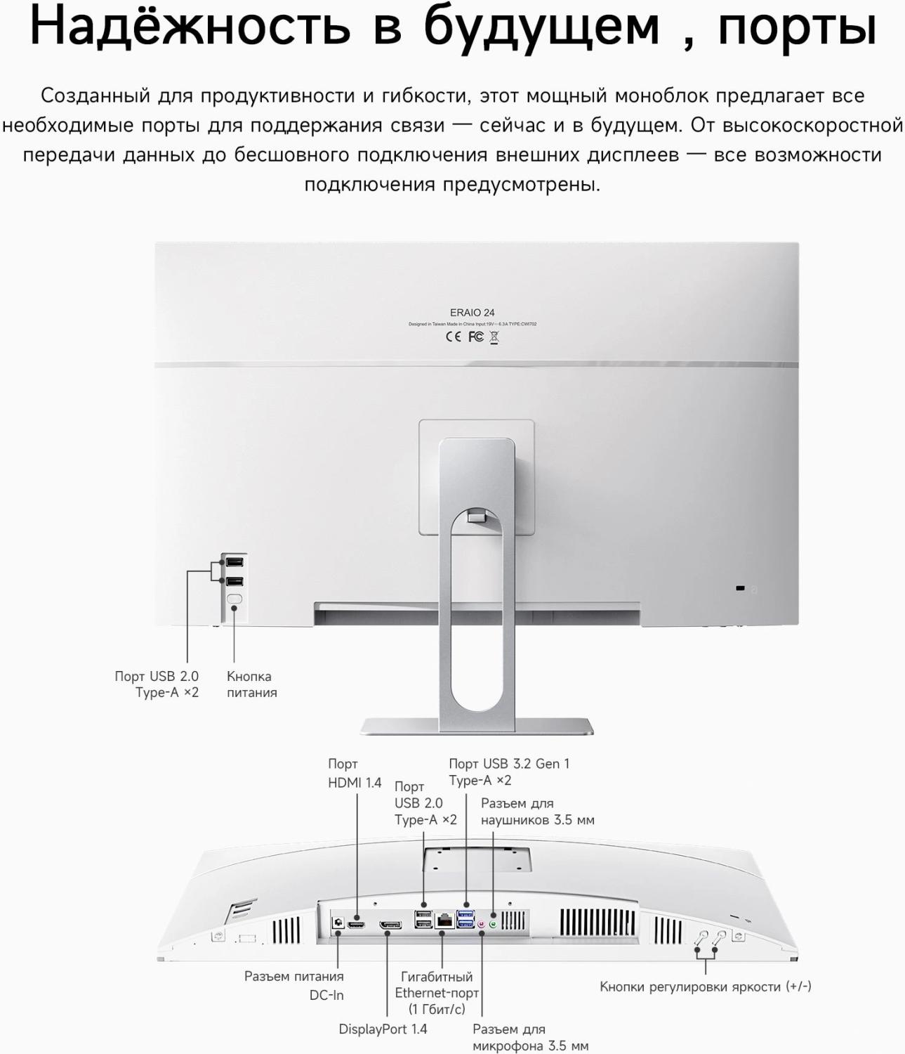 Моноблок Acer Gadget E10 ERAIO 23.8" Full HD Ryzen 7 6800H (3.2) 32Gb SSD1Tb 680M Windows 11 Pro GbitEth WiFi BT 120W Cam белый / серебристый 1920x1080