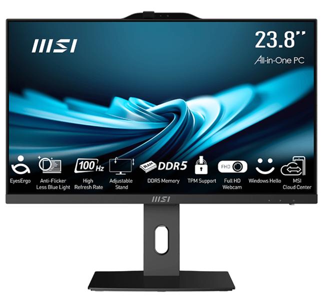 Моноблок MSI Pro AP242P 14M AiO 23,8" FHD(1920x1080)IPS AG Non-touch, Core i3-14100 (3.5GHz), 8Gb DDR5 (1x8Gb),256GB SSD, Intel UHD,WiFi,BT,camera,WirelessKB&mouse Eng / Rus,noOS,1y w-ty,Black