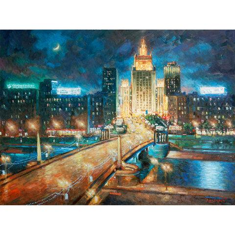 Картина стразами (алмазная мозаика) 40х50 см, ОСТРОВ СОКРОВИЩ "Ночная Москва", на подрамнике, 662594