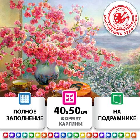 Картина стразами (алмазная мозаика), 40х50 см, ОСТРОВ СОКРОВИЩ "Букет сакуры", на подрамнике, 663874