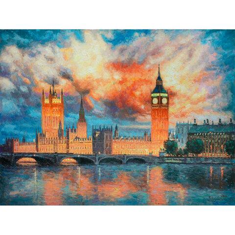 Картина стразами (алмазная мозаика) 40х50 см, ОСТРОВ СОКРОВИЩ "Небо Лондона", на подрамнике, 662592
