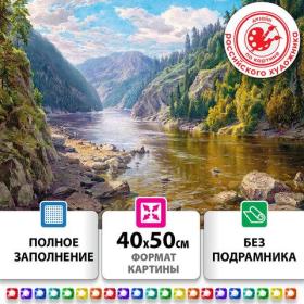 Картина стразами (алмазная мозаика), 40х50 см, ОСТРОВ СОКРОВИЩ "Горная речка", без подрамника, 663867