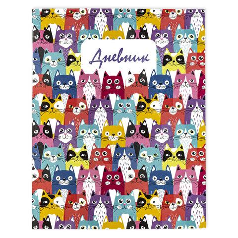 Дневник 1-4 класс 48 л., гибкая обложка, ЮНЛАНДИЯ, выборочный лак, с подсказом, "Котики", 106820