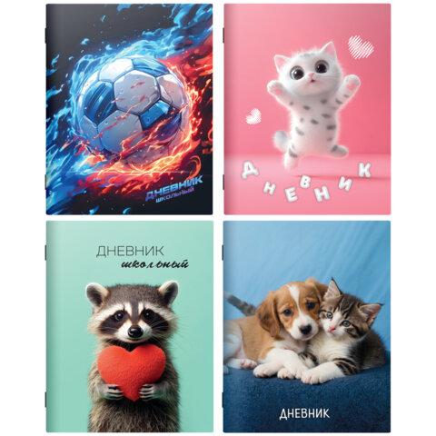 Дневник 1-11 класс 40 л., на скобе, ПИФАГОР, обложка картон, "Котик", 107131