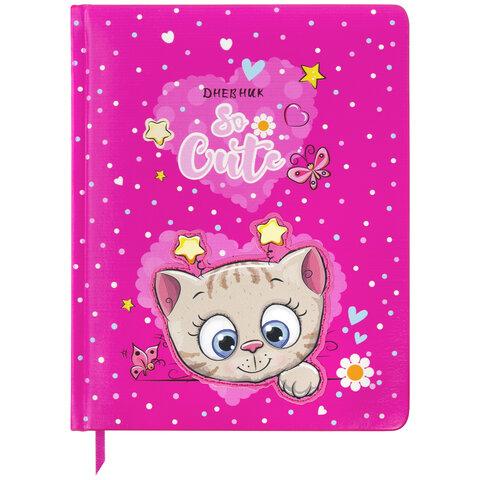Дневник 1-11 класс 48 л., кожзам (твердая с поролоном), печать, наклейки, BRAUBERG, "Котики", 106946