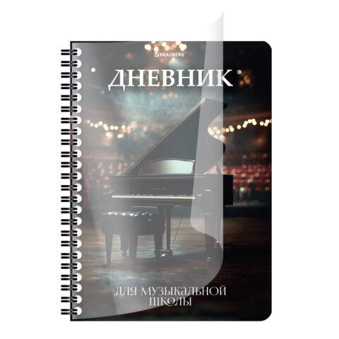Дневник для музыкальной школы 48 листов, гребень, пластиковая обложка, картон, BRAUBERG, "Рояль", 107514