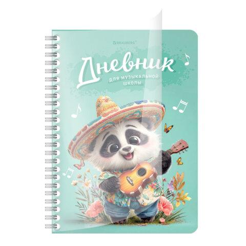 Дневник для музыкальной школы 48 листов, гребень, пластиковая обложка, картон, BRAUBERG, "Панда", 107516