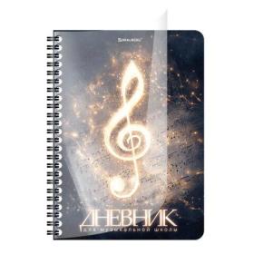 Дневник для музыкальной школы 48 листов, гребень, пластиковая обложка, картон, BRAUBERG, "Музыка", 107515