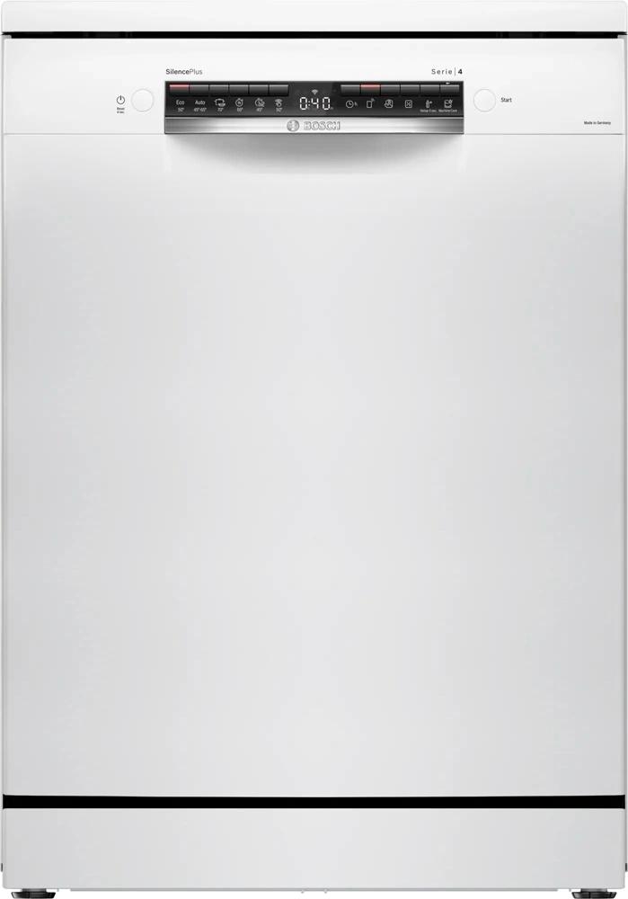 Отдельностоящая посудомоечная машина Bosch, 60 см, 13 комплектов, 8 программ, активная сушка с теплообменником, сенсорное управление, дисплей, отсрочка старта, половинная загрузка, уровень шума 40 дБ, энергоэффективность А++, цвет белый