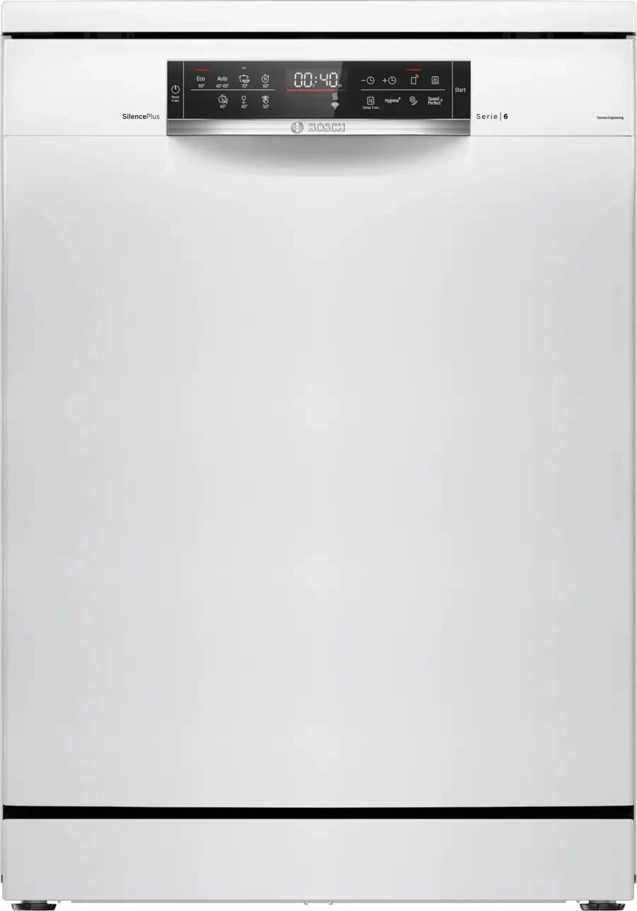Посудомоечная машина BOSCH SMS6EMW65Q отдельностоящая, 60 см, 13 комплектов, 6 стандартных программ, 4 температурных режима, технология защиты стекла, проточный нагревательный элемент, самоочистка фильтра, AquaSensor, дисплей, Wi-Fi, отсрочка запуска, 3 к