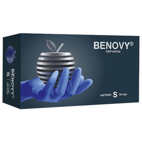 Перчатки нитриловые смотровые 50 пар (100 штук) размер 6-7, S (малый), голубые, BENOVY Nitrile Chlorinated, М