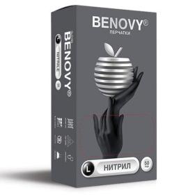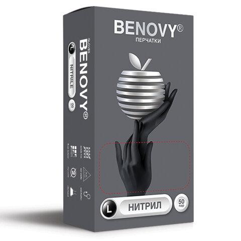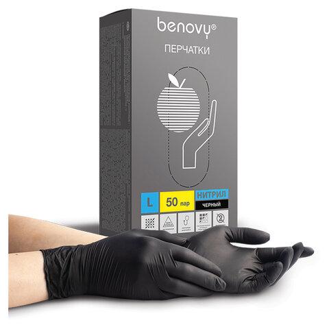 Перчатки нитриловые смотровые 50 пар (100 штук), размер 8-9, L (большой), черные, BENOVY MultiColor, К