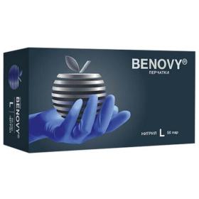 Перчатки нитриловые смотровые 50 пар (100 штук), размер 8-9, L (большой), голубые, BENOVY Nitrile Chlorinated, К