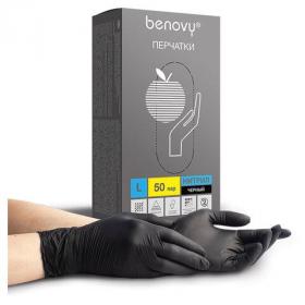 Перчатки нитриловые смотровые 50 пар (100 штук), размер 8-9, L (большой), черные, BENOVY Nitrile Chlorinated, М