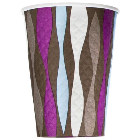 Стакан одноразовый бумажный 300 / 430 мл, диаметр 90 мм, конгрев / печать, "Волна", КОМПЛЕКТ 50 шт., WELDAY (ВЭЛДЭЙ), 702699