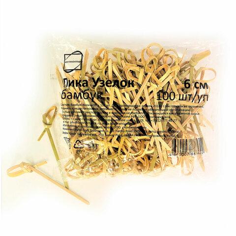 Пики (шпажки) для канапе бамбуковые УЗЕЛОК, 6 см, 100 шт., КП, 123314