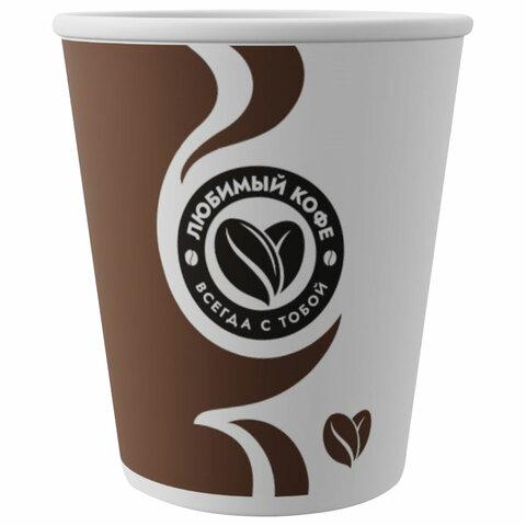 Стакан одноразовый бумажный 200 / 276 мл, D 80 мм, 50 шт., однослойный для холодного / горячего, "Любимый кофе", СКАНДИПАКК, -5102