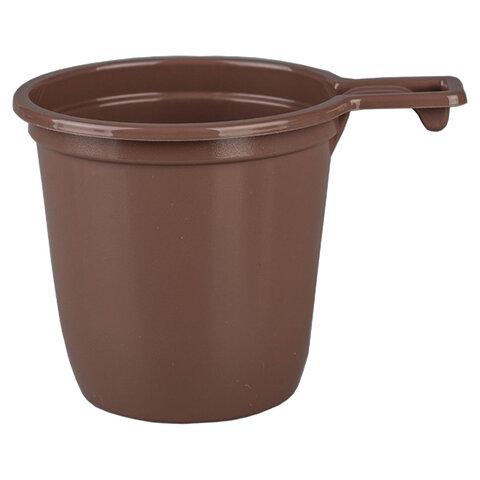 Чашка одноразовая для чая и кофе 200 мл, КОМПЛЕКТ 50 шт., пластик, бело-коричневые, 607601