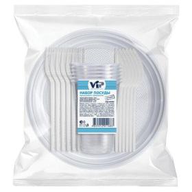 Набор одноразовой посуды на 6 персон, 24 предмета (вилка, нож, стакан, тарелка)