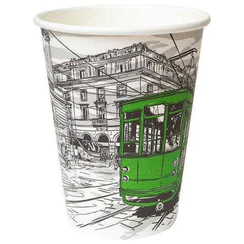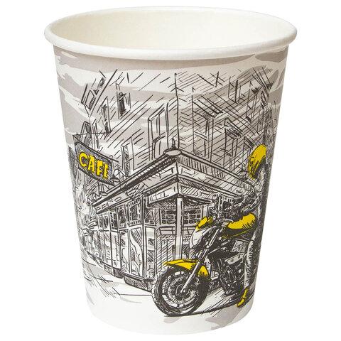 Стакан одноразовый бумажный 300 / 360мл d-90мм с печатью, ГОРОД, КОМПЛЕКТ 50шт, WELDAY, 702696