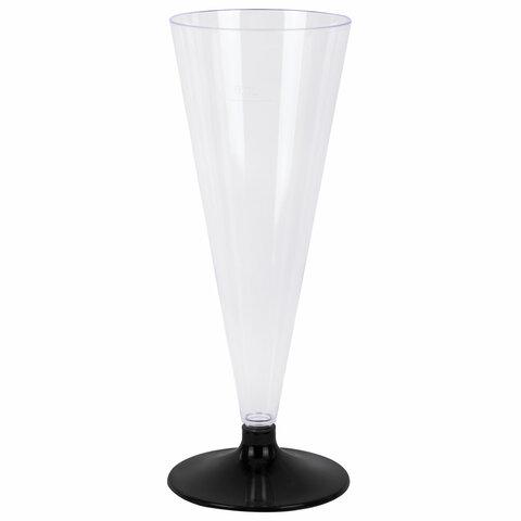 Бокал одноразовый 150 мл для шампанского, КОМПЛЕКТ 6 штук, "Конус", черная низкая ножка, WELDAY (ВЭЛДЭЙ), 881100