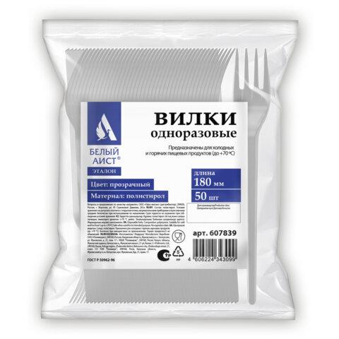 Вилка одноразовая пластиковая 180 мм, прозрачная, КОМПЛЕКТ 50 шт., ЭТАЛОН, WELDAY (ВЭЛДЭЙ), 607839