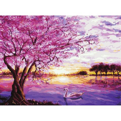 Картина по номерам 40х50 см, ОСТРОВ СОКРОВИЩ "Цветущая сакура", на подрамнике, акриловые краски, 3 кисти, 662494