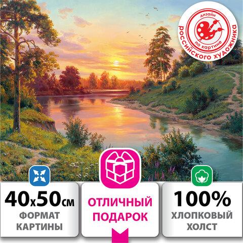 Картина по номерам 40х50 см, ОСТРОВ СОКРОВИЩ "Пейзаж с рекой", на подрамнике, акрил, кисти, 663289