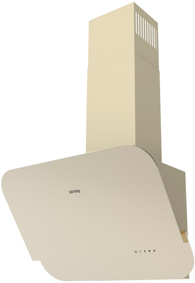 Вытяжки Korting / наклонная Ширина 60 см механическое управление 3 режима скрытые кнопки управления 650 м3 / ч. алюминиевый жировой фильтр LED освещение бежевое стекло (В наличие в Москве)