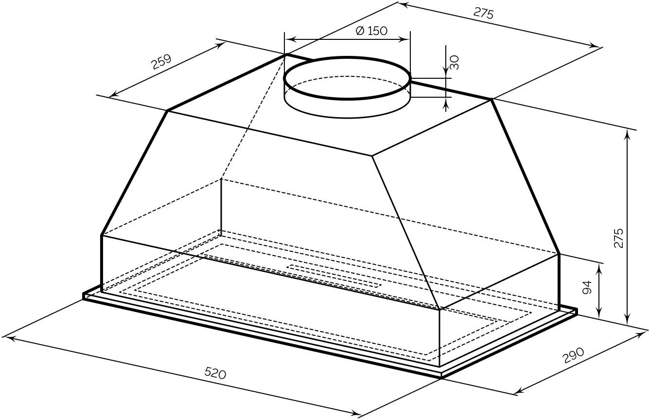 Вытяжка встраиваемая Lex HIDE G 600 черный управление: кнопочное (1 мотор)