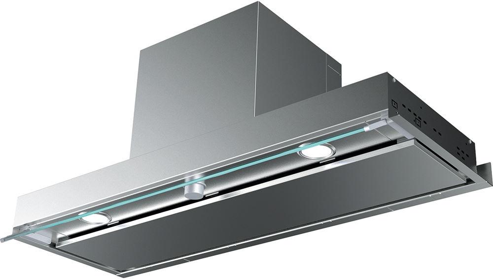 Вытяжка Kuppersberg / Островная вытяжка, отвод / рециркуляция, 1000 м3 / час, электронное кнопочное управление, таймер на отключение, 4 ступенчатая регулировка скорости, светодиодное освещение 2х2 Вт, анодированный алюминиевый жироулавливающий фильтр, угольный
