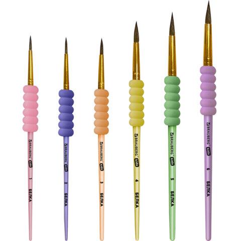 Кисти c EVA-вставкой БЕЛКА набор 6 шт. (круглые №1, 2, 3, 4, 5, 6), блистер, BRAUBERG KIDS, 201093