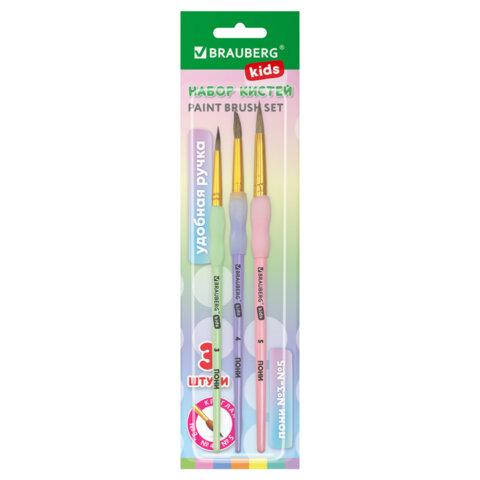 Кисти c силиконовой вставкой ПОНИ набор 3 шт. (круглые №3, 4, 5), блистер, BRAUBERG KIDS, 201096