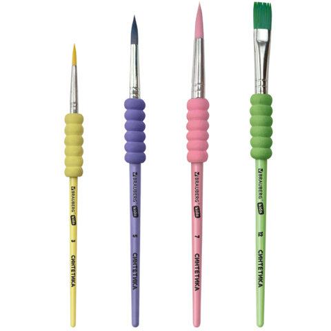 Кисти c EVA-вставкой НАБОР 4 шт. (синтетика круглые №4, 8, 12; плоская №10), блистер BRAUBERG KIDS, 201095