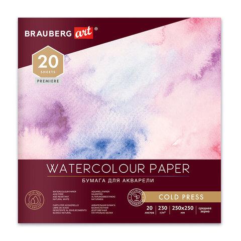 Альбом для акварели, бумага 230 г / м2, 250х250 мм, среднее зерно, 20 листов, склейка, BRAUBERG ART PREMIERE, 113216