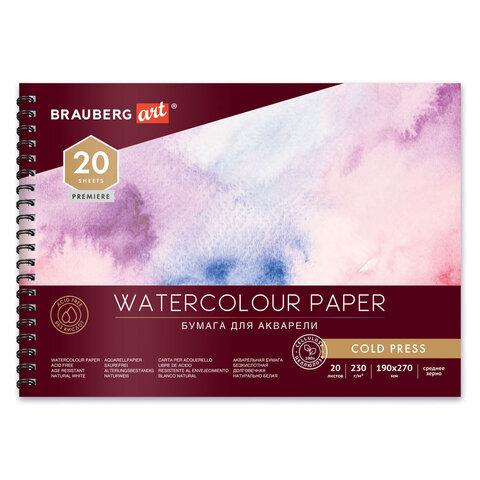 Альбом для акварели, бумага 230 г / м2, 190х270 мм, среднее зерно, 20 листов, гребень, BRAUBERG ART PREMIERE, 113215