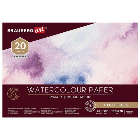 Альбом для акварели, бумага 300 г / м2, 190х270 мм, среднее зерно, 20 листов, склейка, BRAUBERG ART PREMIERE, 113222