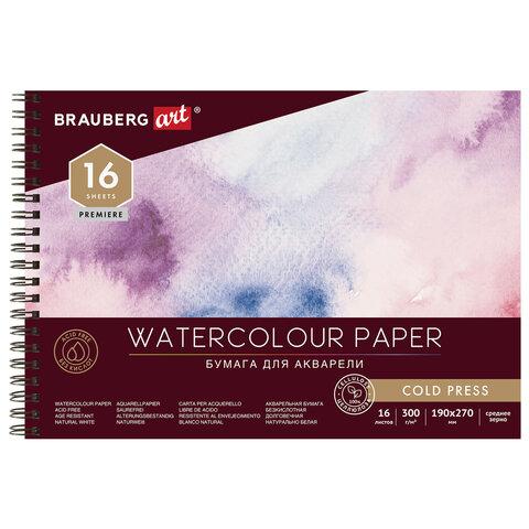 Альбом для акварели, бумага 300 г / м2, 190х270 мм, среднее зерно, 16 листов, гребень, BRAUBERG ART "PREMIERE", 113212