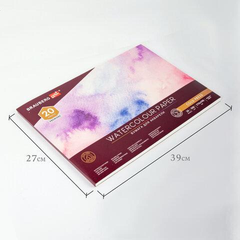 Альбом для акварели, бумага 300 г / м2, 270х390 мм, среднее зерно, 20 листов, склейка, BRAUBERG ART PREMIERE, 113223