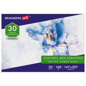 Альбом для акварели, бумага 160 г / м, 147х207 мм, 30 л., склейка, BRAUBERG ART CLASSIC, 105925