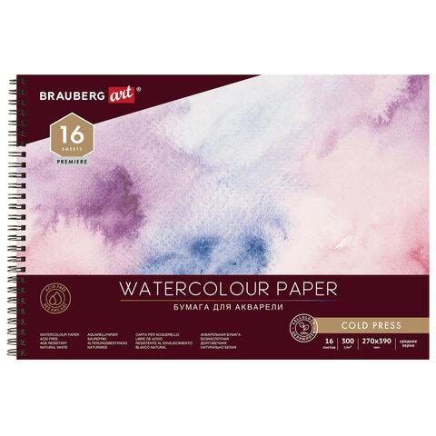 Альбом для акварели, бумага 300 г / м2, 270х390 мм, среднее зерно, 16 листов, гребень, BRAUBERG ART PREMIERE, 113213