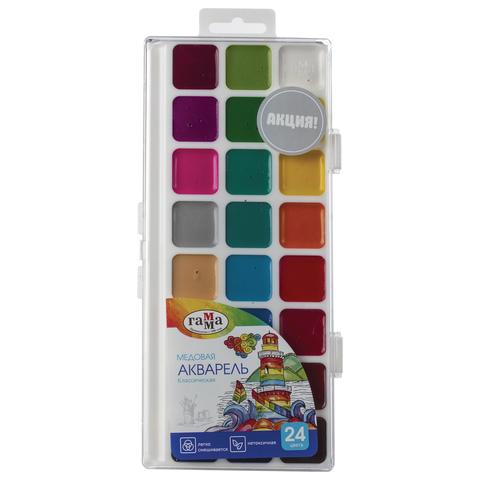 Краски акварельные ГАММА "Классическая", 24 цвета, медовые, пластиковый корпус, европодвес, 1009198
